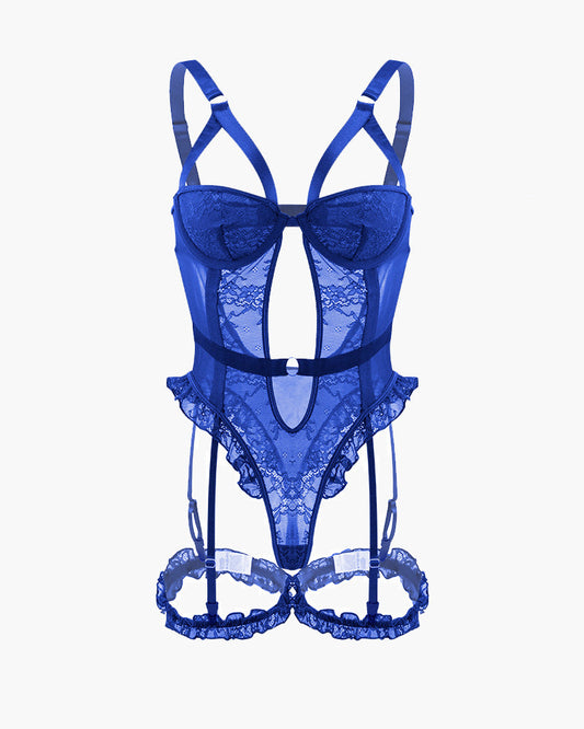 ORVESSA Backless Lace Garter Teddy With Leg Rings