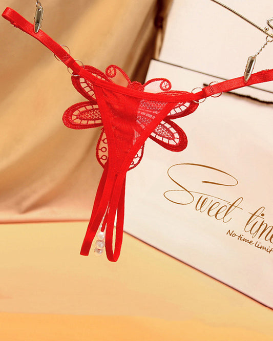AVERLYN Bowknot Crotchless Beaded Thong