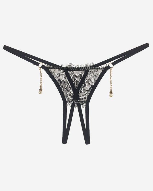 RAVESSIA Crotchless Pearl Pendant Thong