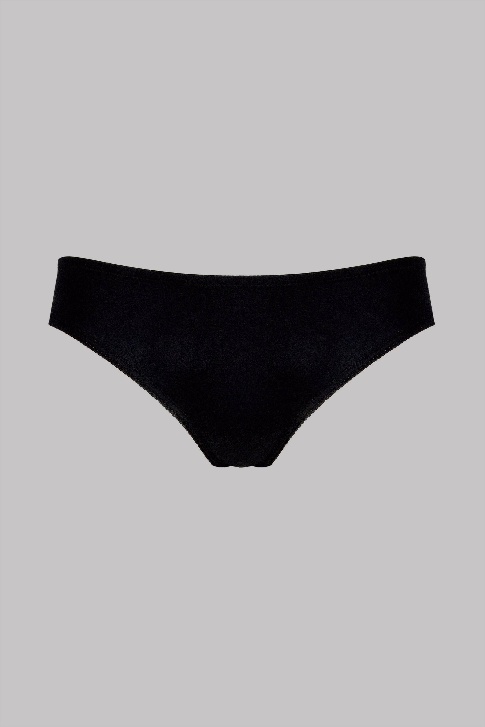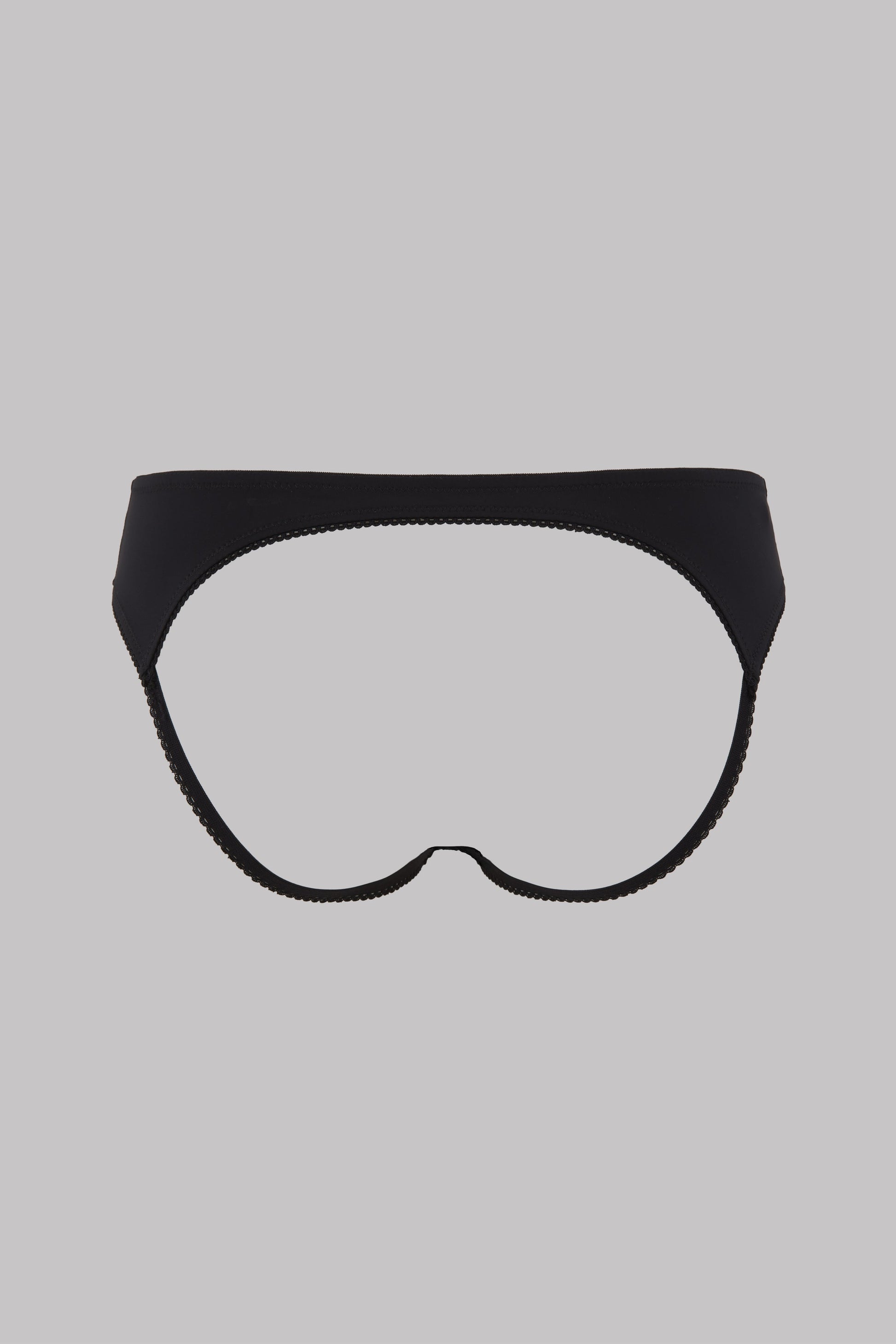 Open opaque microfibre hipsters with elasticated picot trim. Low-rise design that reveals the buttocks.