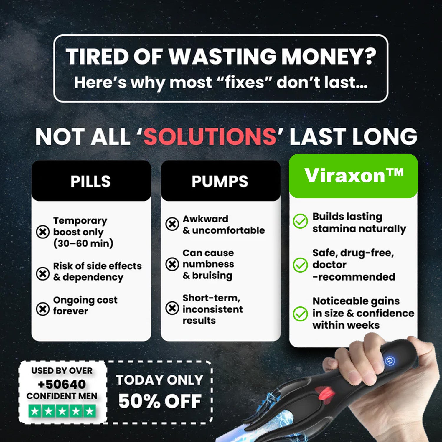 Viraxon targets the root cause of performance decline—poor blood flow and nerve desensitization—using therapeutic wave pulses clinically shown to support erectile health.